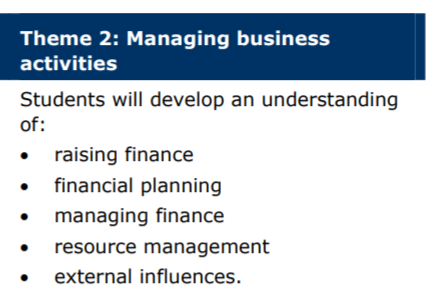 Theme 2 was studied in year 12 and it includes a lot of financial topics. It is crossed with strategy and examined in Paper 2 & Paper 3. Content summary and detail is included below: